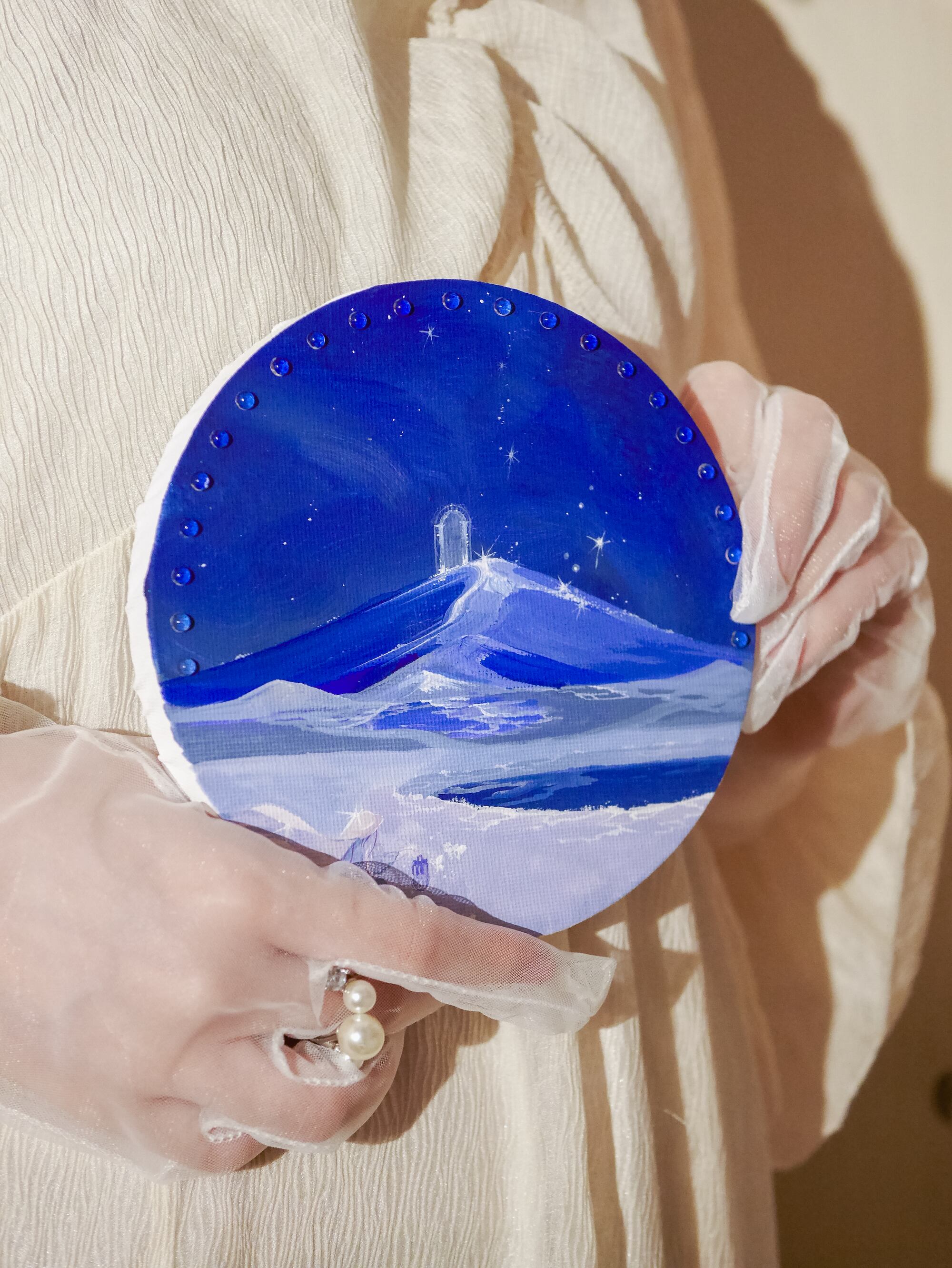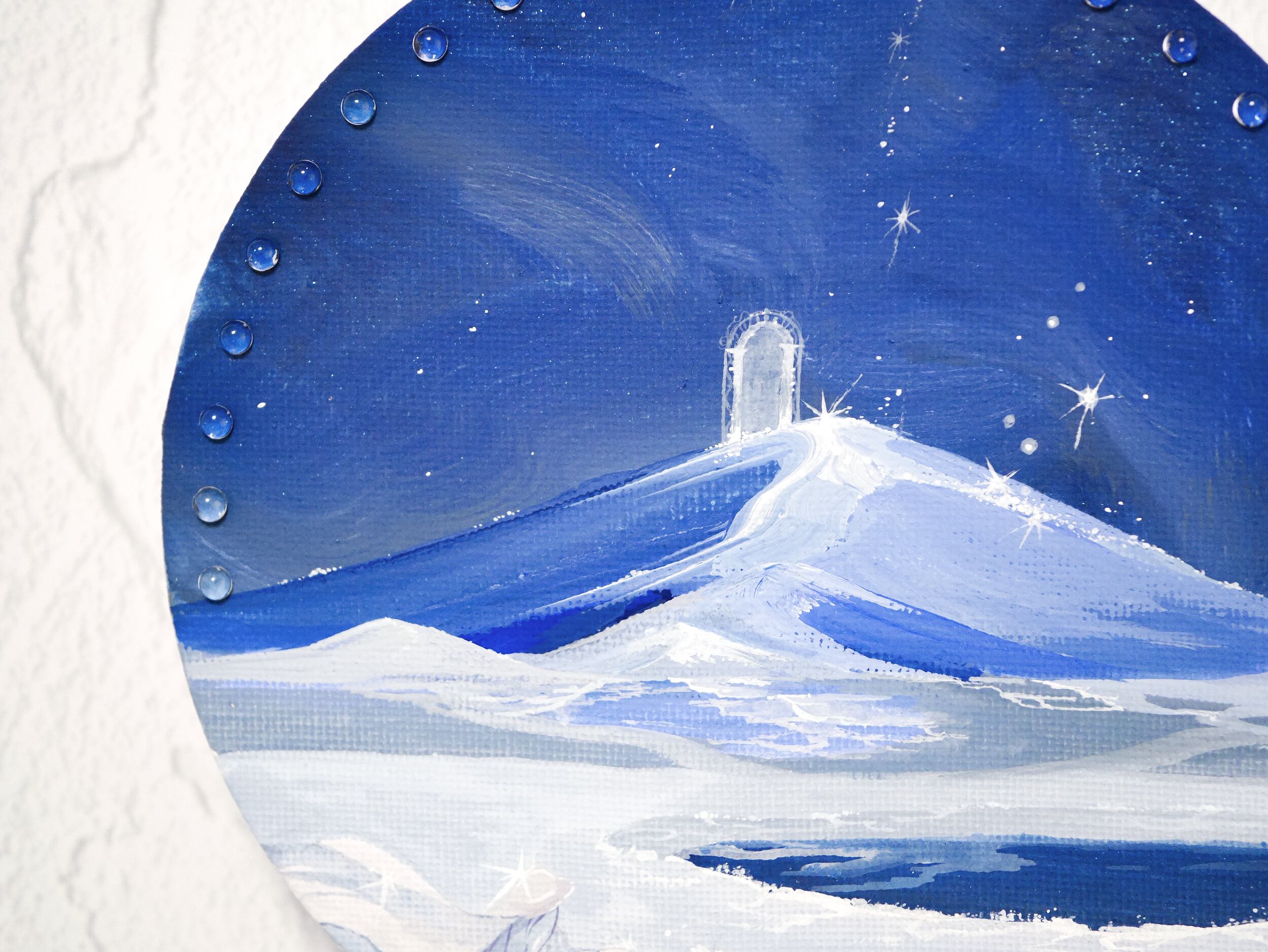 凍てつく翅を持つ蝶が夢に溶け出し、この物語の根幹となる少し前のお話。ランタンを持ちひとり砂丘を歩く人間が居ました。旅人と似ていながら少し違った雰囲気を纏う彼女は、琥珀と瑠璃を隣り合わせにしてオアシスの浅瀬に落とします。これが久遠の時を経て混じり合い、凍蝶として生まれる卵となりました。長い髪で隠した首筋に鱗片が光る彼女は、一体何者だったのでしょうね。