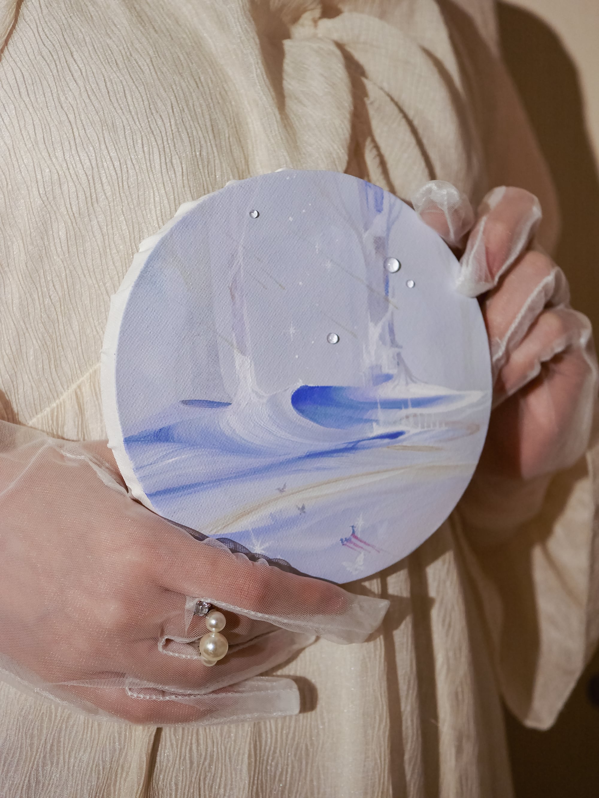 白夜の刻、旅人と毛玉たちは全てが凍てついた夢へと迷い込みました。けれど不思議なことに、少しも寒くないのです。凍原を見渡し触れてみると、雪だと思っていたものはとても細やかな鱗粉でした。私たちは蝶の住む地に来たようです。ここでふと思い出すのは人間が七色の星を探したお伽話。ここの景色はその世界によく似ていますが、星の正体は宝石蝶だったようですね。