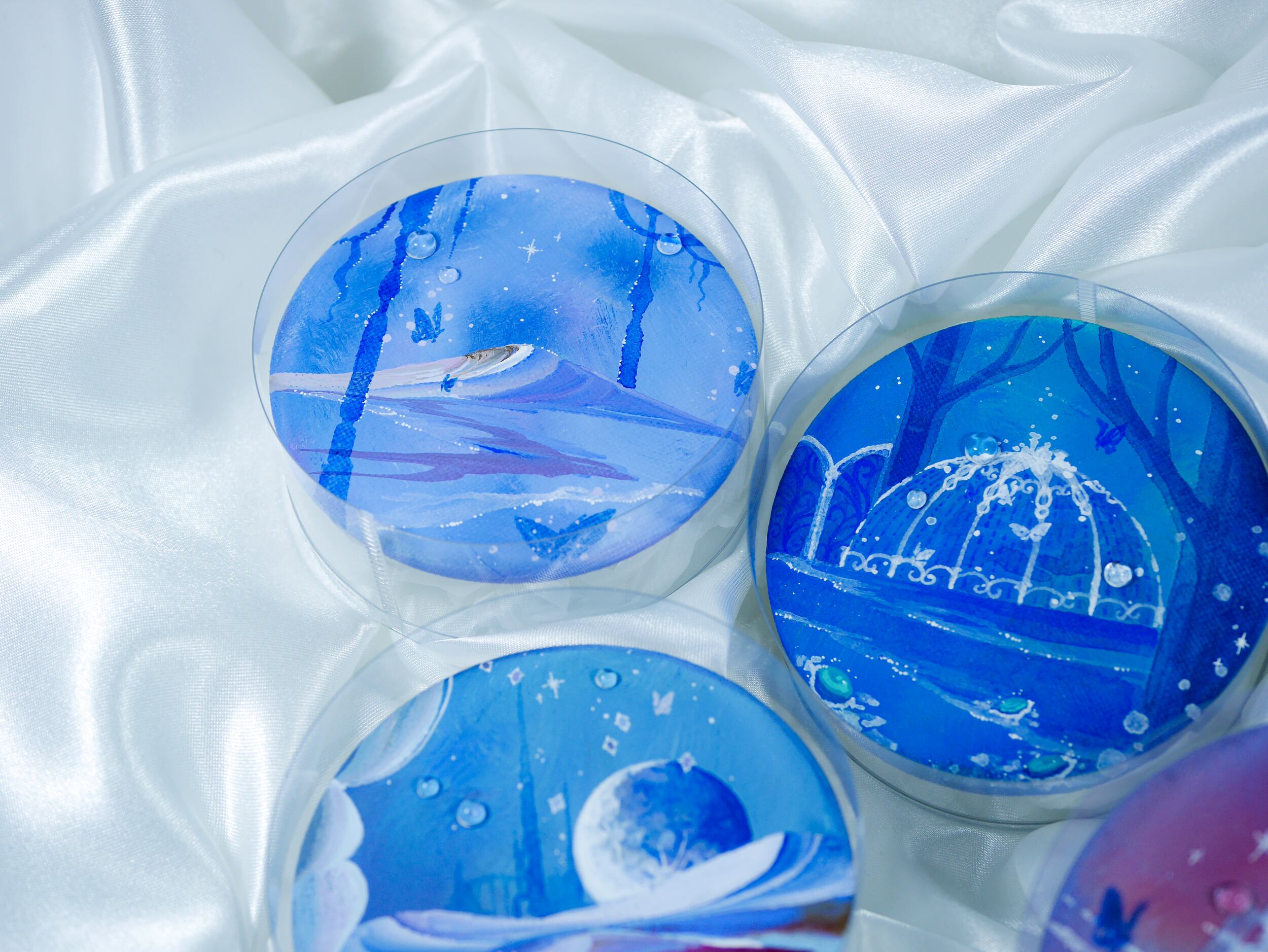二人展「宝石蝶と手記」展示会場にてお披露目した、背面がマグネットになっている小原画作品です。