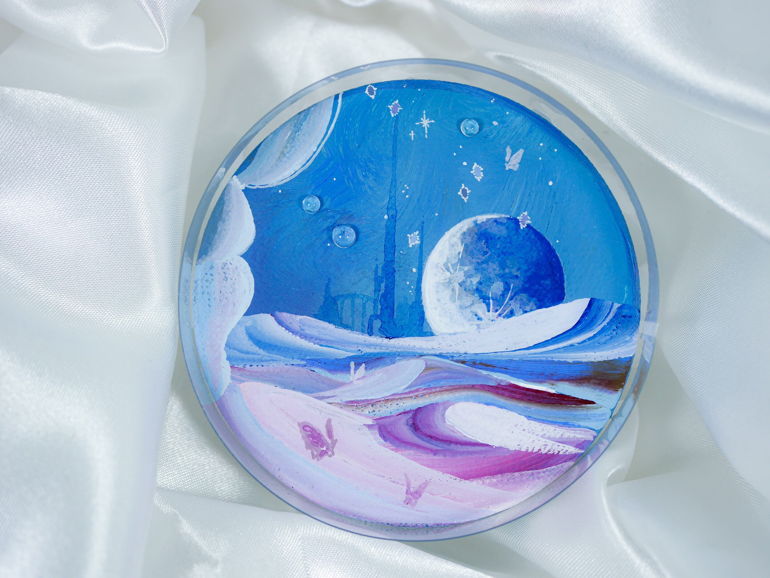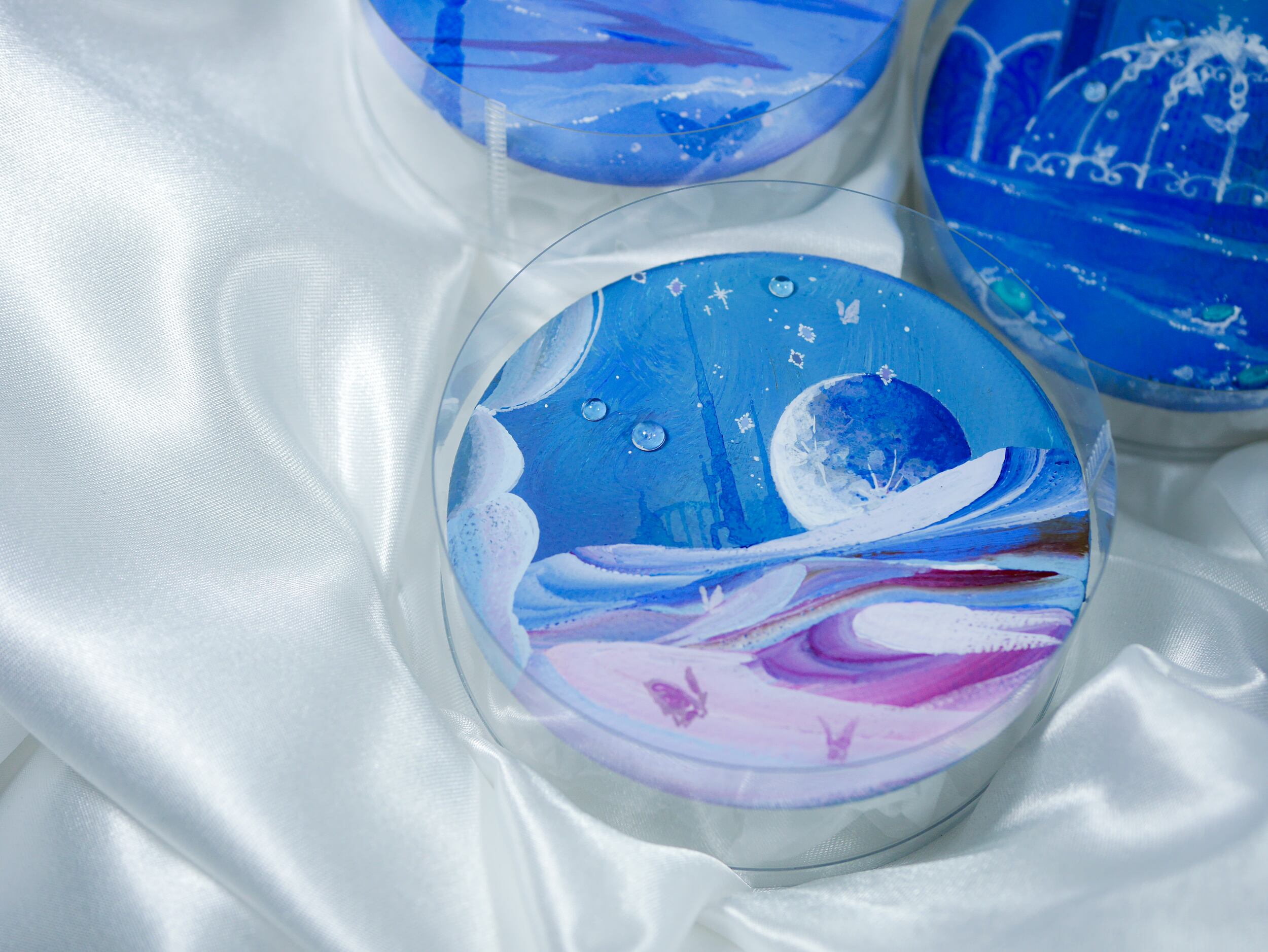 二人展「宝石蝶と手記」展示会場にてお披露目した、背面がマグネットになっている小原画作品です。