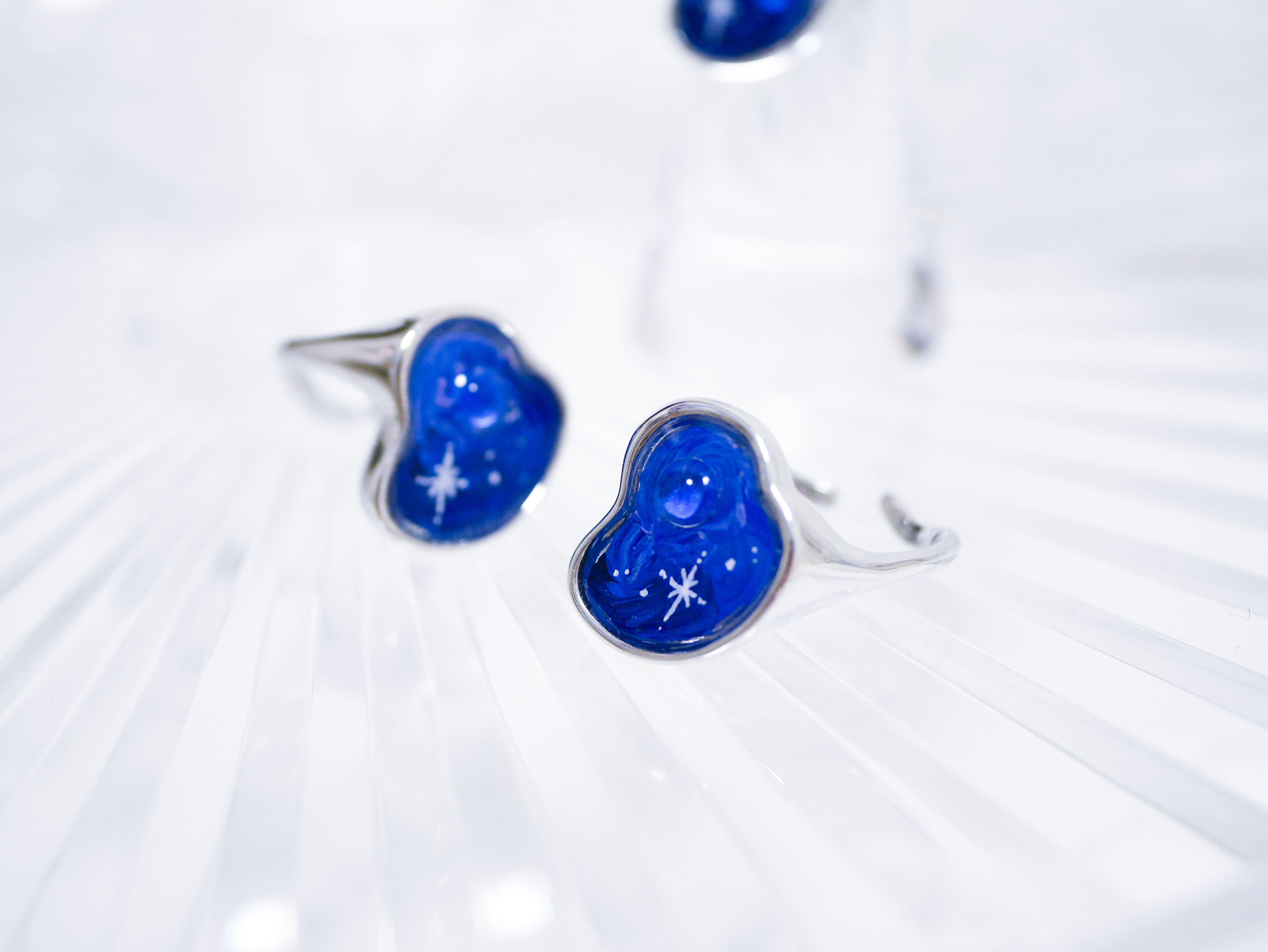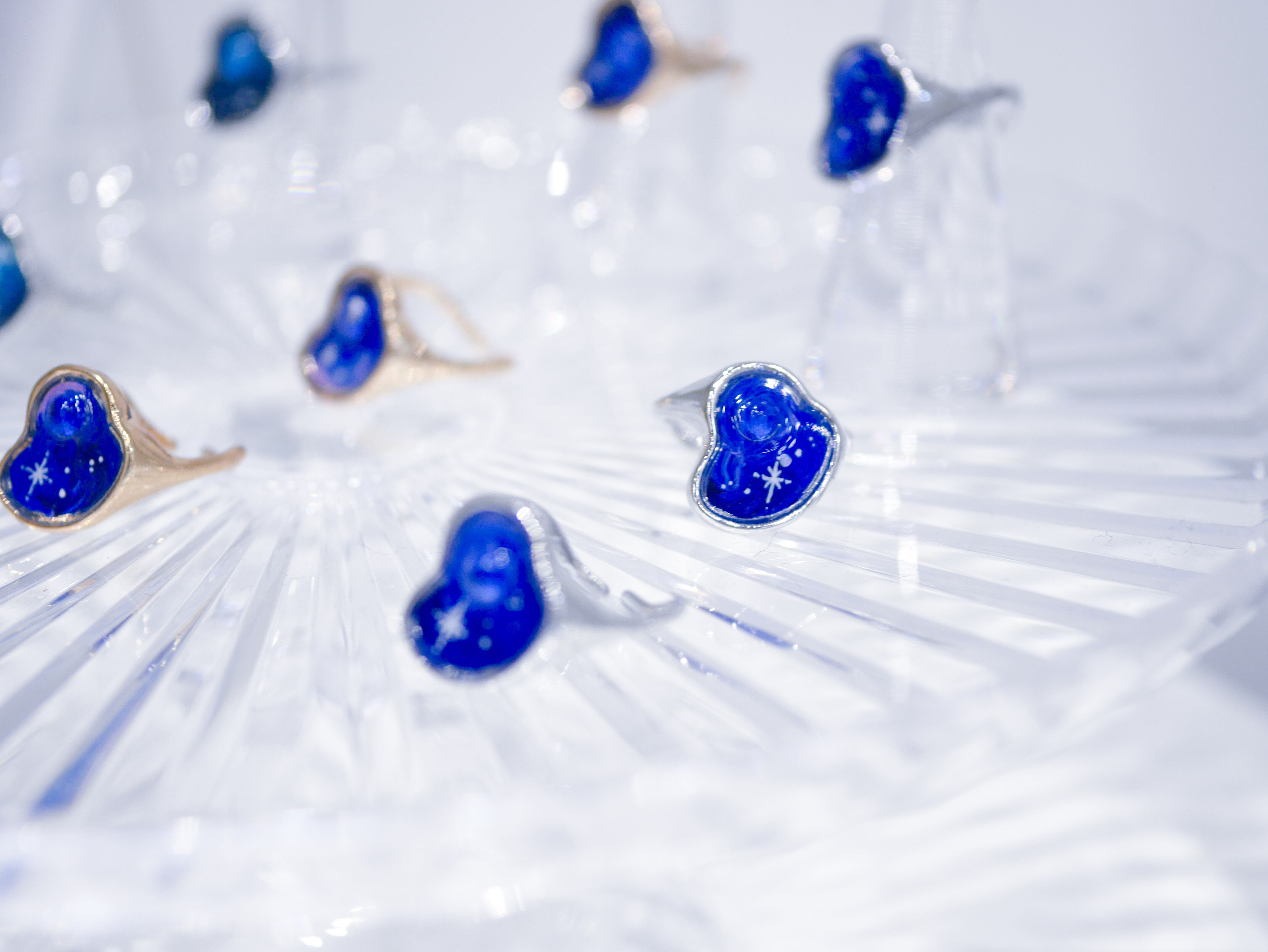 夢遊世界の欠片をリングにした作品です。トップは雫が付いたようなデザインになっています。夜の帷の空気感を是非お楽しみください。