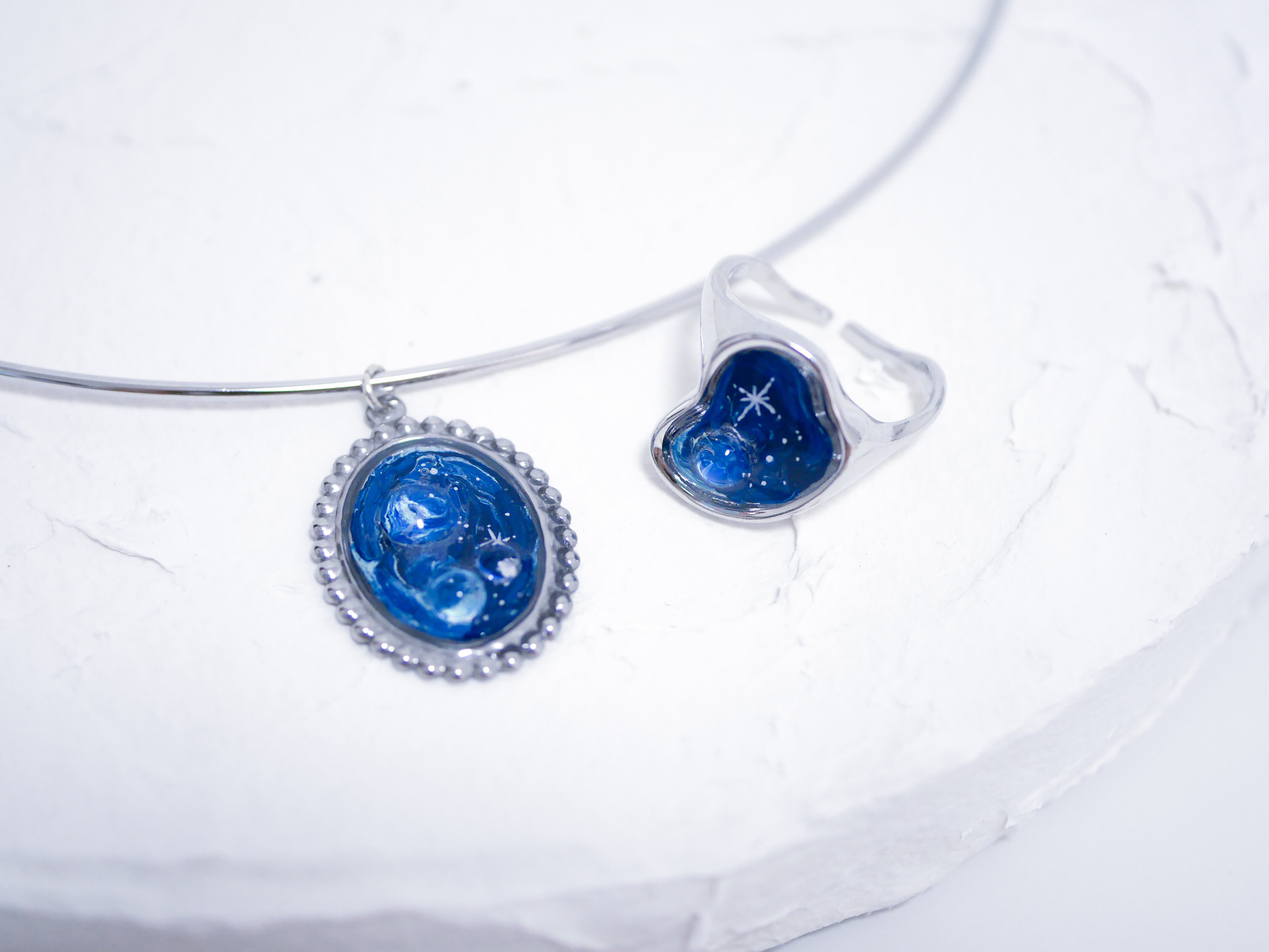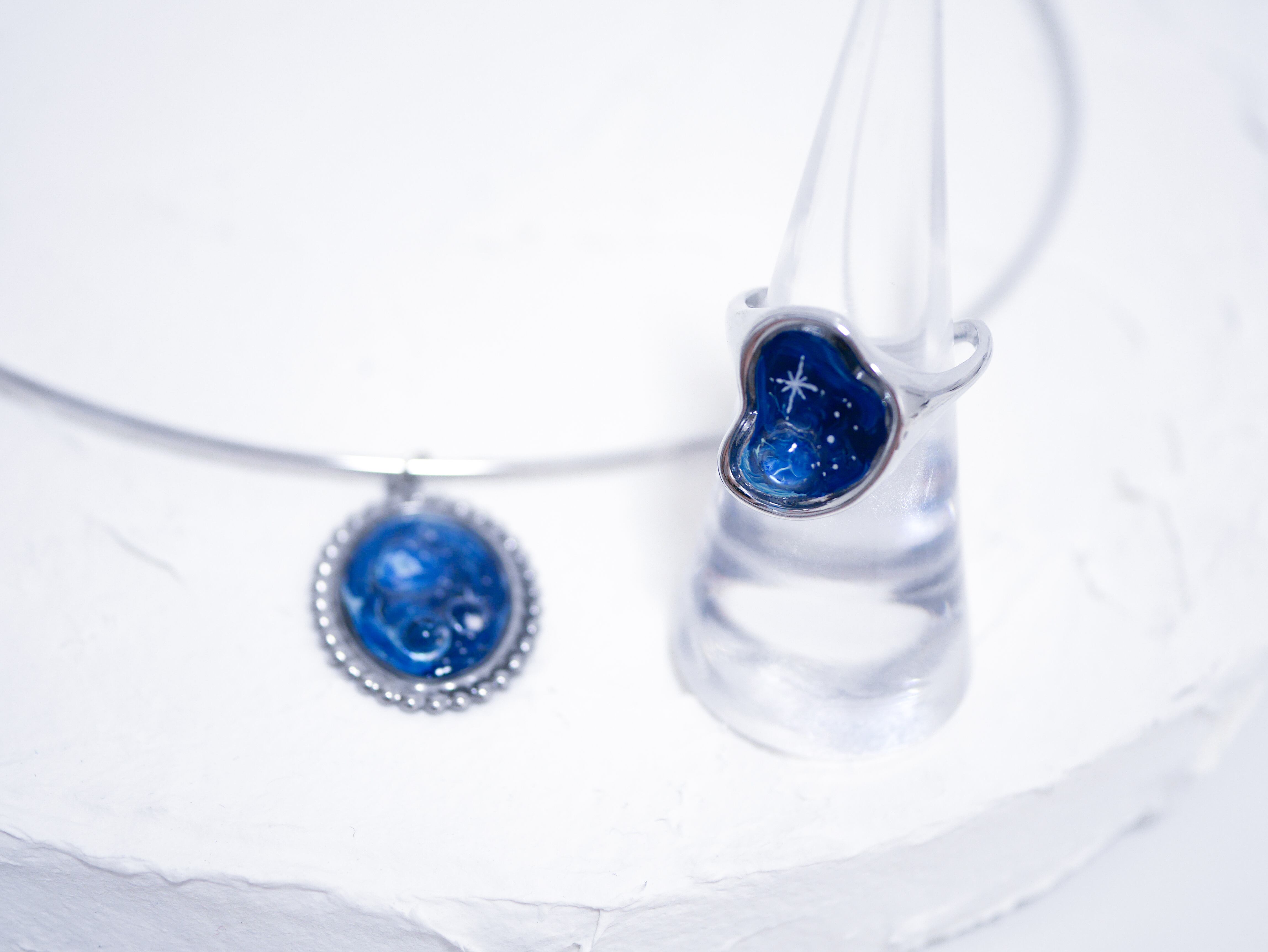 夢遊世界の欠片をリングとチョーカーにしたセット商品です。どちらもトップは雫が付いたようなデザインになっています。首元と手元を夢遊世界で飾ってみてはいかがでしょうか?